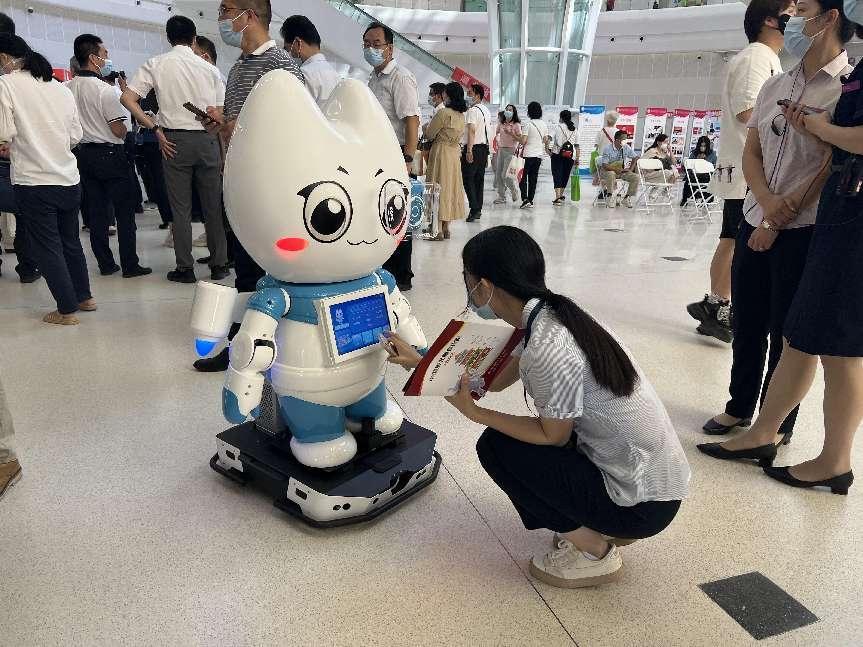 “这是全国首个口腔健康科普机器人,这款机器人除了能在医院里做引导,还有一大亮点是医院组织专家为其建立了一个庞大的口腔健康知识库,里面存储着几千条常见的口腔知识问答,随时可以解答患者疑问,让大家在就医过程中接受口腔健康科普。”来自武汉大学口腔医院的蒋楚剑向湖北省政府党组成员邵新宇院士,湖北省科协主席、武汉大学校长窦贤康介绍牙牙精灵互动科普机器人和牙牙精灵科普项目,两位院士与机器人展开互动。