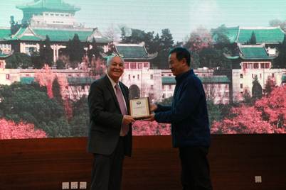 新闻网讯(通讯员韩玉芹)10月28日,中国科学院院士、中国科学院植物研究所研究员、中国科学院大学教授种康做客珞珈讲坛第311讲,带来了题为《植物细胞如何感知低温信号》的学术报告,副校长唐其柱为其颁发珞珈讲坛纪念证书。