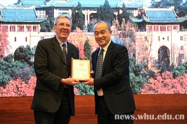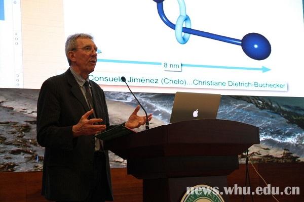 新闻网讯(通讯员桂波)4月13日,法国科学院院士、诺贝尔化学奖得主让.皮诶尔.索维奇(Jean-Pierre Sauvage)教授来访,做客珞珈讲坛第229讲,带来题为“从太阳能研究到分子拓扑学和机器”的主题演讲。校长窦贤康为其颁发珞珈讲坛纪念证书。张俐娜院士主持。