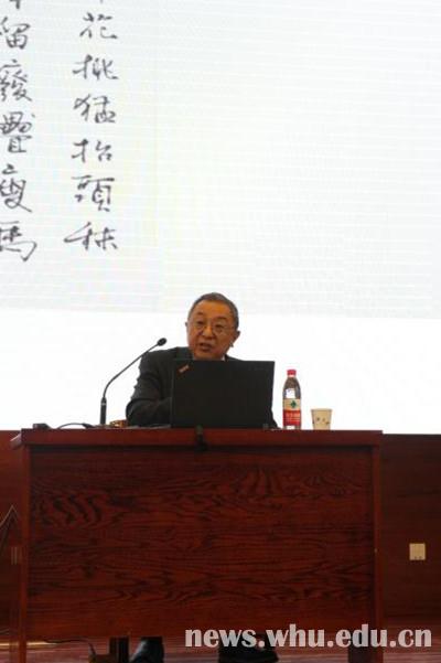 ▲珞珈讲坛第166讲3月24日举行,香港非物质文化遗产咨询委员会主席、香港中华学社创社社长、原香港城市大学中国文化中心主任郑培凯教授作题为“汉字审美与中国文化创新”的报告。(人文社会科学研究院供图)