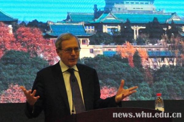 ▲珞珈讲坛第163讲3月6日举行,德国科学院院士Paul Knochel(保罗.诺科赫尔)谈“锂、镁和锌的多官能团化有机金属的有机合成”。(李伟国摄)