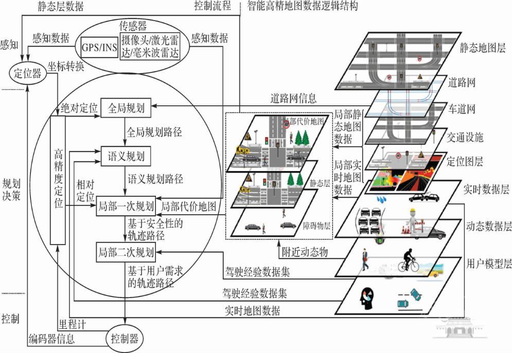 《智能高精地图数据逻辑结构与关键技术》由刘经南院士、郭迟教授等完成,于2019年8月发表在《测绘学报》期刊上。该文章以车辆自动驾驶、无人驾驶为研究对象,讨论定义了智能高精地图,认为智能高精地图作为未来出行的关键一环,是交通资源全时空实时感知的载体和交通工具全过程运行管控的依据。为了推动智能高精地图研究与应用进展,对其关键特征与问题展开分析讨论,该文从地图学理论上提出智能高精地图信息传输模型;从实际应用上结合轮式机器人自主智能控制流程,提出智能高精地图数据逻辑结构,并分析其在自动驾驶中的应用;从计算模式上总结“众包+边云协同计算”计算模式,并针对如何提高众包数据质量的问题,开展关键技术分析;从应用场景上分析未来智能高精地图的有效应用场景。通过这些关键技术可实现城市交通资源的最优化配置,充分发挥不同交通资源之间的联动效果,从源头上解决城市之间交通资源的供需矛盾,实现高效高质量出行,实现“出行即服务”愿景。该成果得到了国家重点研发计划、国家测绘地理信息标准制定项目、中国工程院重大咨询研究项目等项目资助。